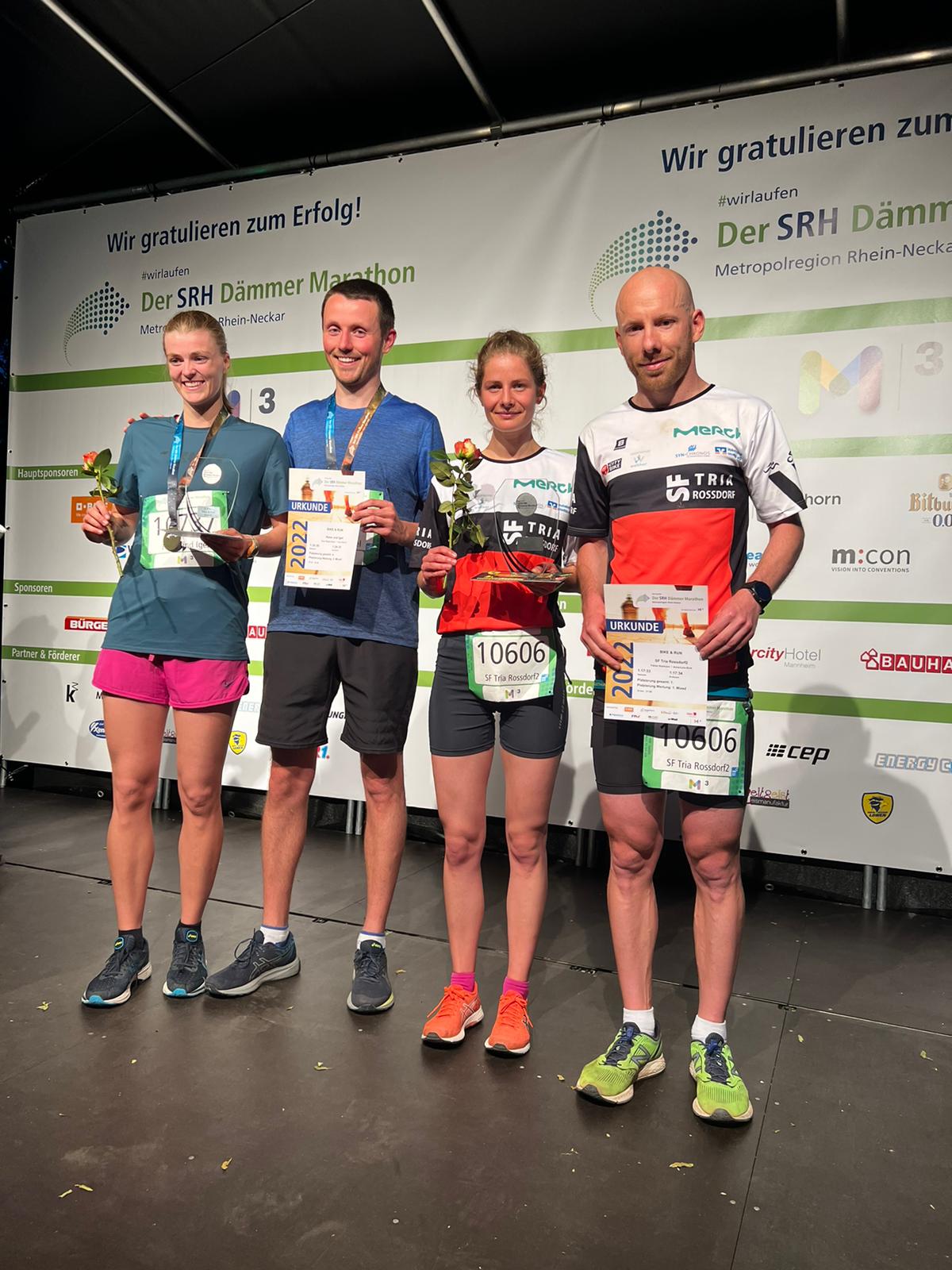 Platz 1 und damit Gesamtsieger für unser Mixed Team des SF Tria Roßdorf. Wir hatten viel Spaß, sagen Danke und freuen uns schon auf den Mannheimer Dämmermarathon 2023.